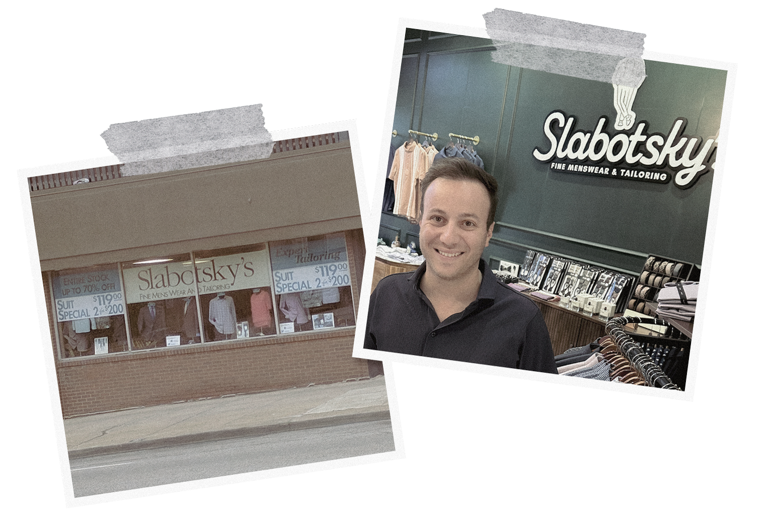 Slabotsky’s Fine Menswear & Tailoring has been Kansas City’s destination for timeless style, expert craftsmanship, and personalized service. Founded in 1908, the shop built its reputation on delivering exceptional fit, premium fabrics, and meticulous in-house tailoring, values that remain at the heart of everything we do today. Now led by Michael Jerwick, who carries forward the legacy of his late father, Bruce, Slabotsky’s blends tradition with modern sophistication. Our new River Market location reflects that evolution, offering a premium shopping experience where classic elegance meets contemporary style.