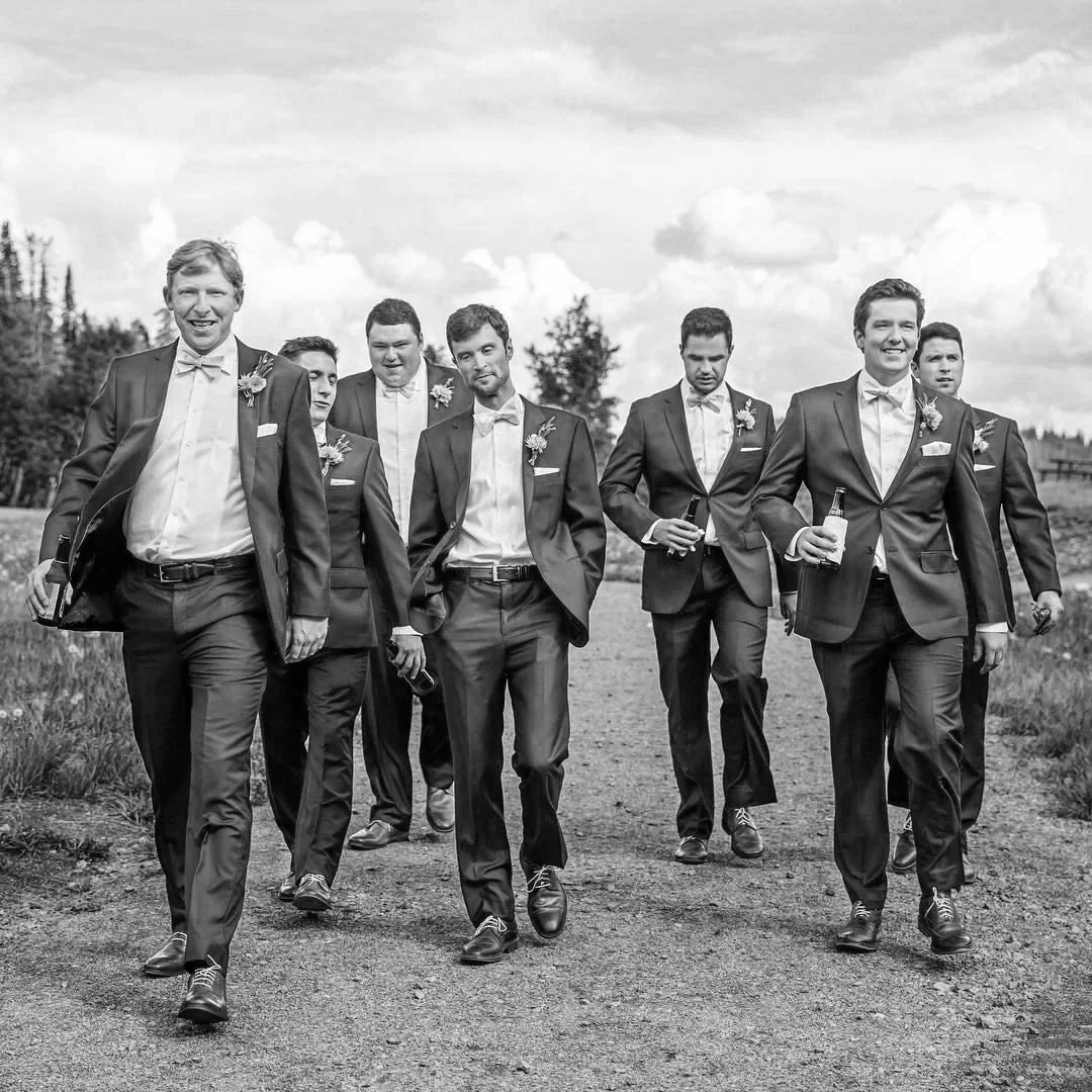 We have all suits tailored and ready to pick up four days before the wedding. If it's a destination wedding, we will have them complete four days before the party leaves.
